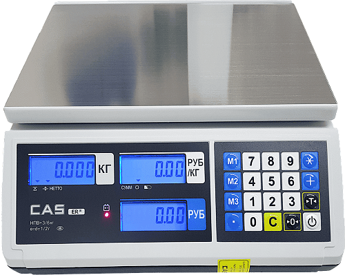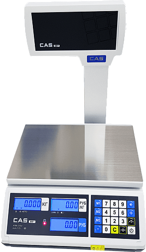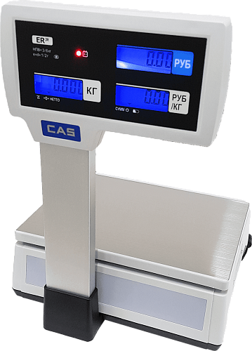 Торговые весы CAS ER JR-15 со стойкой, имеют функции расчета сдачи, учета массы тары, суммирования стоимости. Есть интерфейс RS-232 и ЖК дисплей. Современные весы от известного производителя.