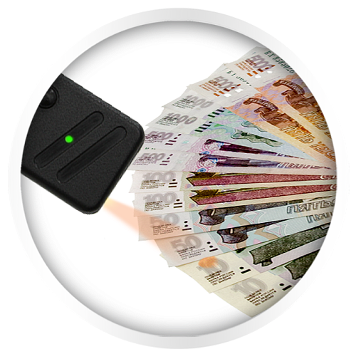 Портативный карманный детектор акцизных марок и банкнот Cassida EasyCheck. Может считывать любые акцизные марки и российские рубли. В качестве режимов детекции применяются Спецэлемент М и антистокс-контроль.