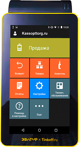 Кассовый смарт терминал от банка Тинькофф с фискальным накопителем на 15 месяцев в комплекте.